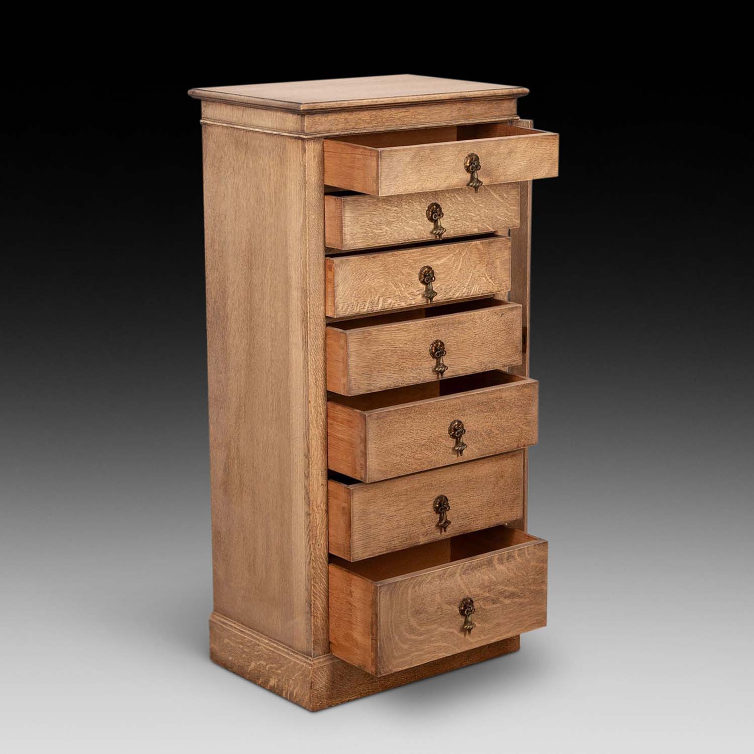 This compact piece offers useful storage in the seven small working drawers that are lockable via the side hinged vertical flap. Just a lovely useful & decorative piece.