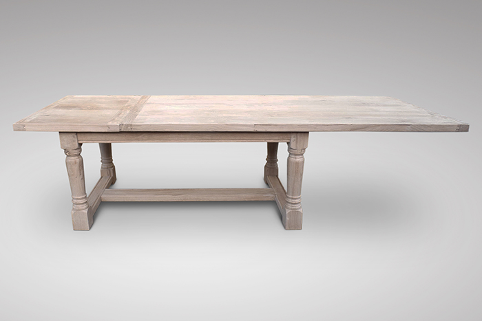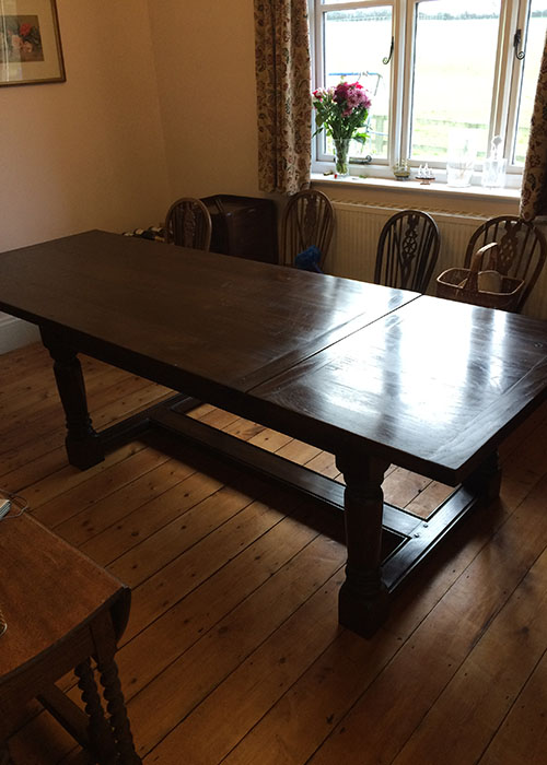 We have been commissioned to make this impressive and yet elegant solid oak dining table, with a Cotswold lime stone finish.