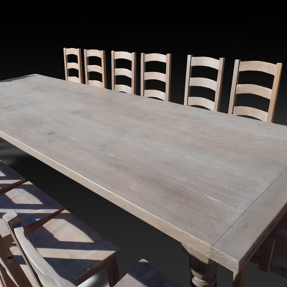 We have been commissioned to make this impressive and yet elegant solid oak dining table, with a Cotswold lime stone finish.